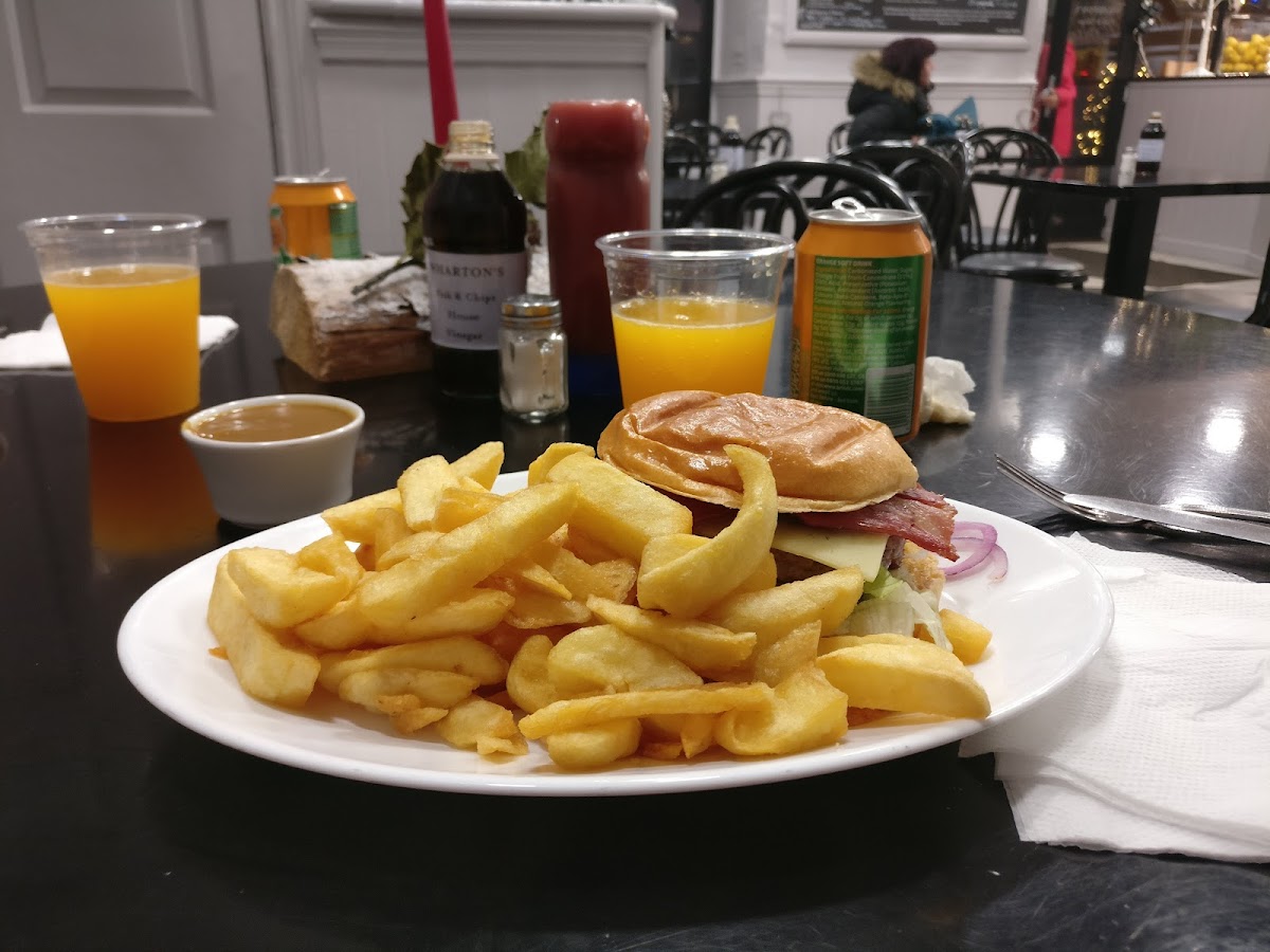The highlight of Wharton’s menu is, without a doubt, their freshly prepared fish and chips. The crispy, golden batter paired with tender, flaky fish creates a satisfying combination that keeps customers coming back for more. Alongside this iconic dish, the restaurant offers a variety of other options, including chicken tenders, which are perfectly seasoned and fried to a crisp. For those with a hearty appetite, the double cheeseburger combo is a must-try, offering a filling, juicy meal that’s complemented by a side of crispy fries.